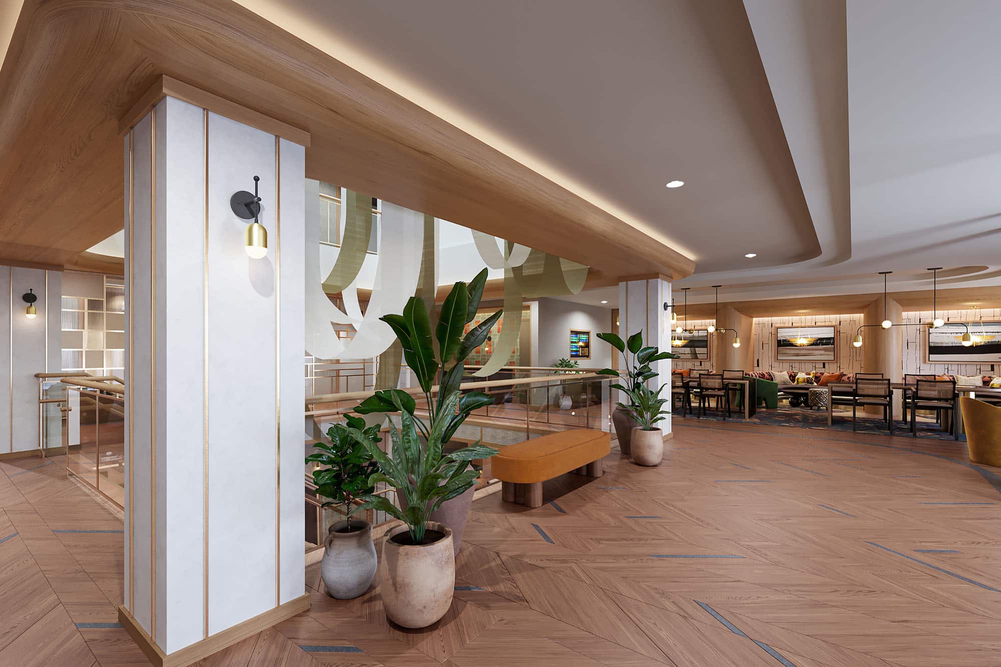 Working in tandem with Urban Investment Partners (UIP) and Bonstra Haresign Architects, ZDS developed a hospitality-driven amenity experience for a full renovation of an existing vacant office building to a 117-unit apartment building. The design team took inspiration from the adjacent 44-acre Winkler Botanical Preserve to envision a new resident lobby, lounge space, fitness studio, resident corridors, and rooftop terrace. Natural textures, patterns, and motifs informed the interior architecture and design of this serene, park-like oasis in in the West Alexandria neighborhood of Northern Virginia.